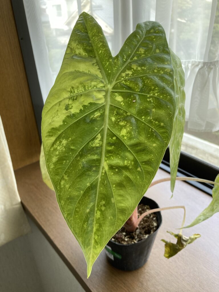 下葉の枯れた『アロカシア ピンクドラゴン』。株元は固くて元気そう。