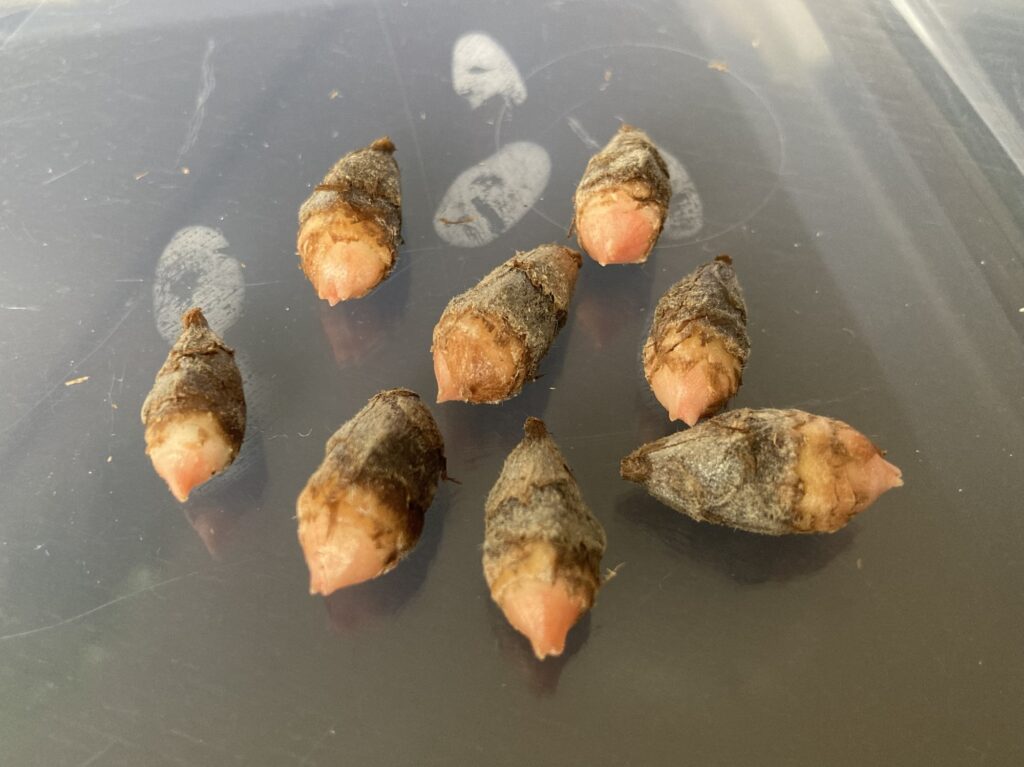 『メネデール』による発根の促進はもちろん、この後に行う子芋の皮むきが行いやすくなります。