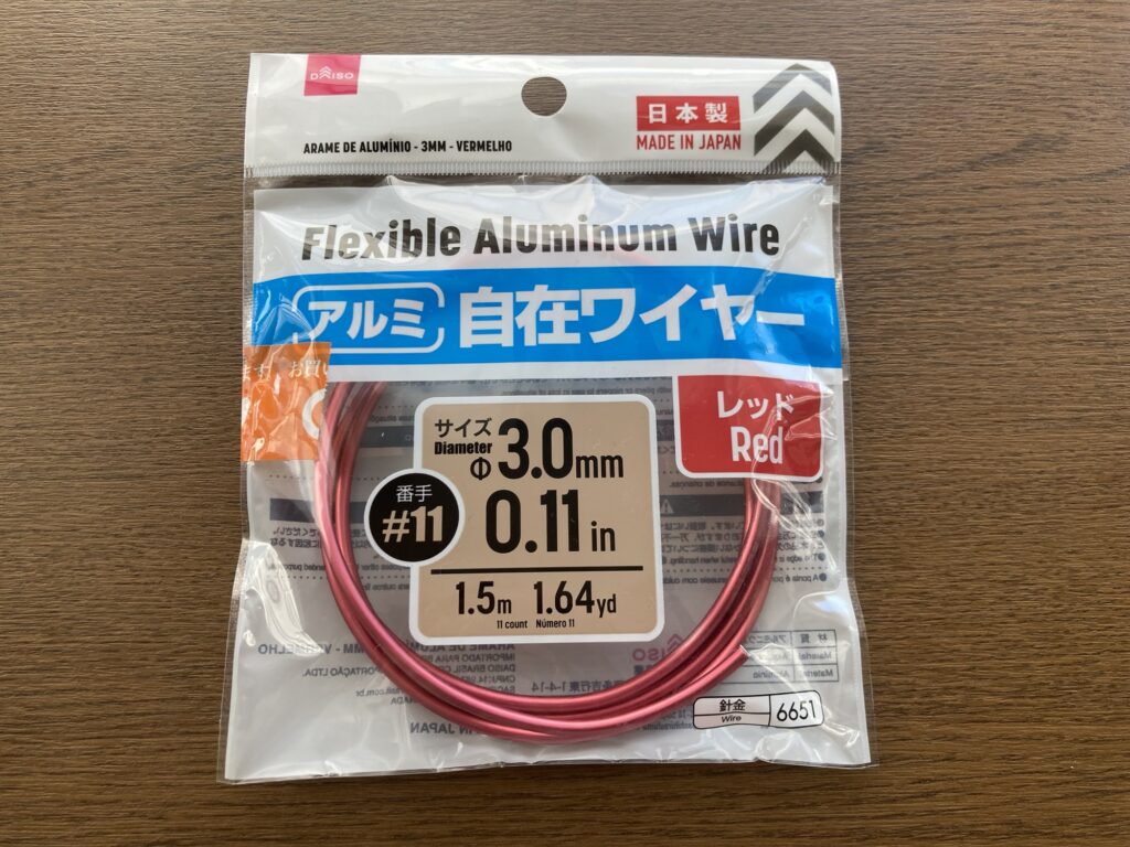 少しでもかわいく見せるため、園芸用の支柱ではなく、ダイソーで売っている3ミリの太さのアルミ線を使用しました。