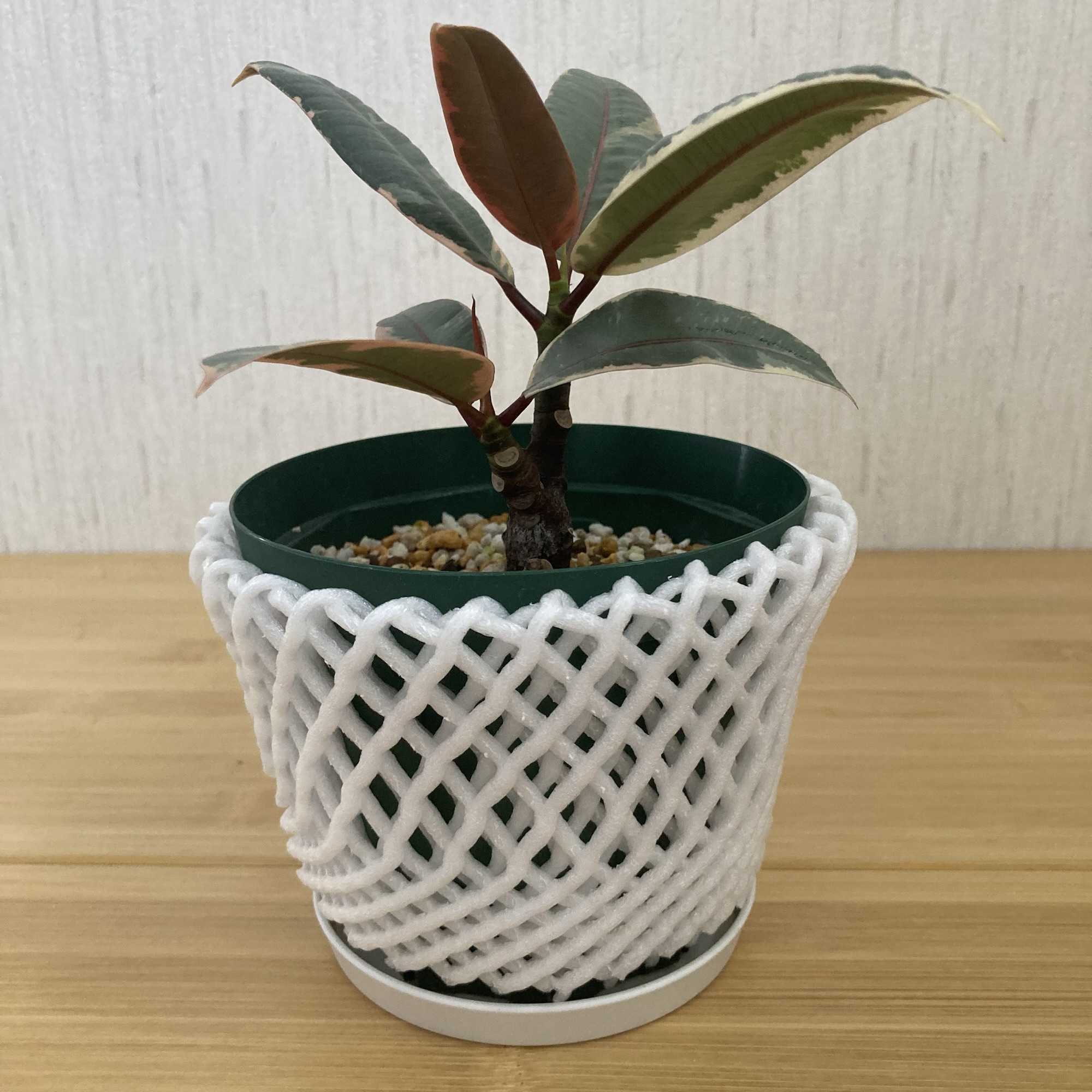 準備したのは、りんごや梨などに被せてある『フルーツキャップ』。『フルーツネット』とも呼ばれています。これを鉢に被せることで保温効果があるそう。こんな簡単なことでも、有るのと無いのとでは全然ちがうんだとか。