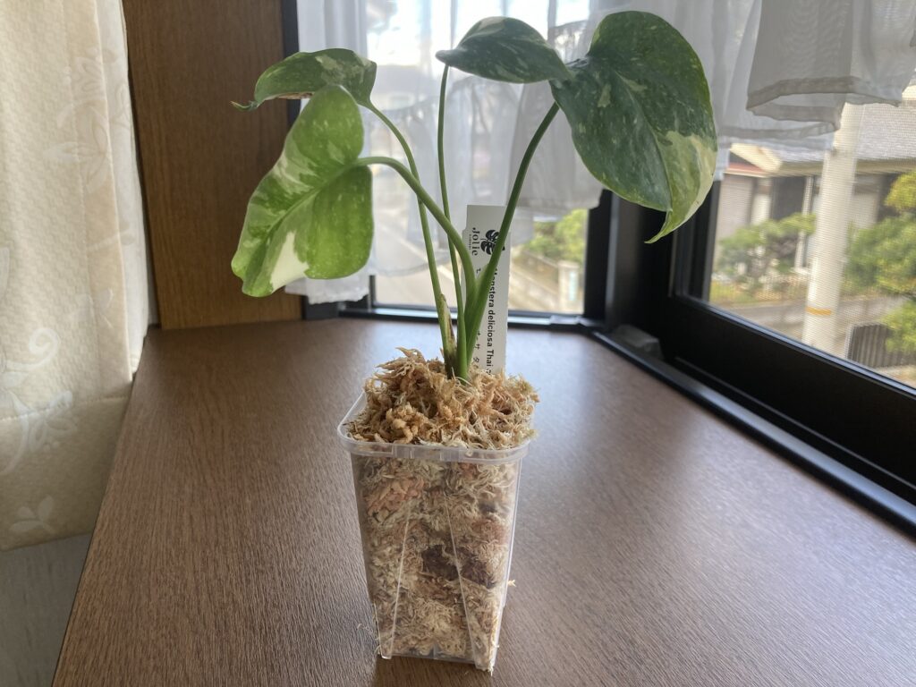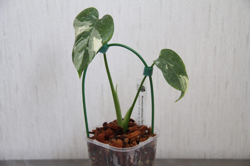 実は、高価なモンステラである『クリームブリュレ』や『レガシー』という品種は、この『タイコンステレーション』の『選抜品種』です。組織培養で作られた苗は、この『選抜品種(クリームブリュレやレガシー)』を元に作っていることもあるとのこと。しかし、『選抜品種』の表現までは中々引き継ぐことができないそうで、一見普通の『タイコンステレーション』のように見えるそうですが、『選抜品種』の遺伝子を持っているので、成長するにつれて『クリームブリュレ』だ!ってなることもなくはないそうなんです。