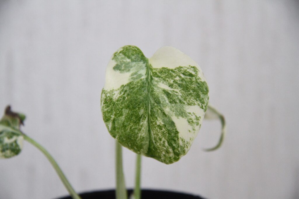 葉っぱ全体に、多くの細かな白やクリーム色の散り斑が入り、全体的にクリームがかった緑に見えるものが『レガシー』と言われているようです。斑の細かさや数の多さなどによって、「これは『レガシー』だ!」、とか「これは『レガシー』と呼べない!」とか言われているようですが、特に散り斑が細かく多ければ多いほど、ヤフオクなどでも高く取り引きされています。