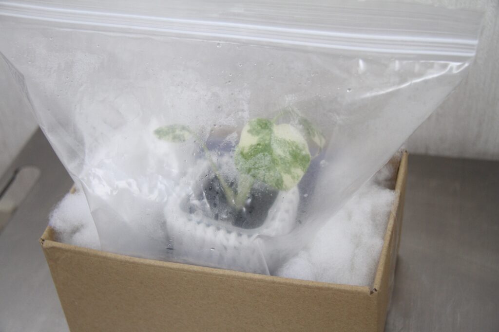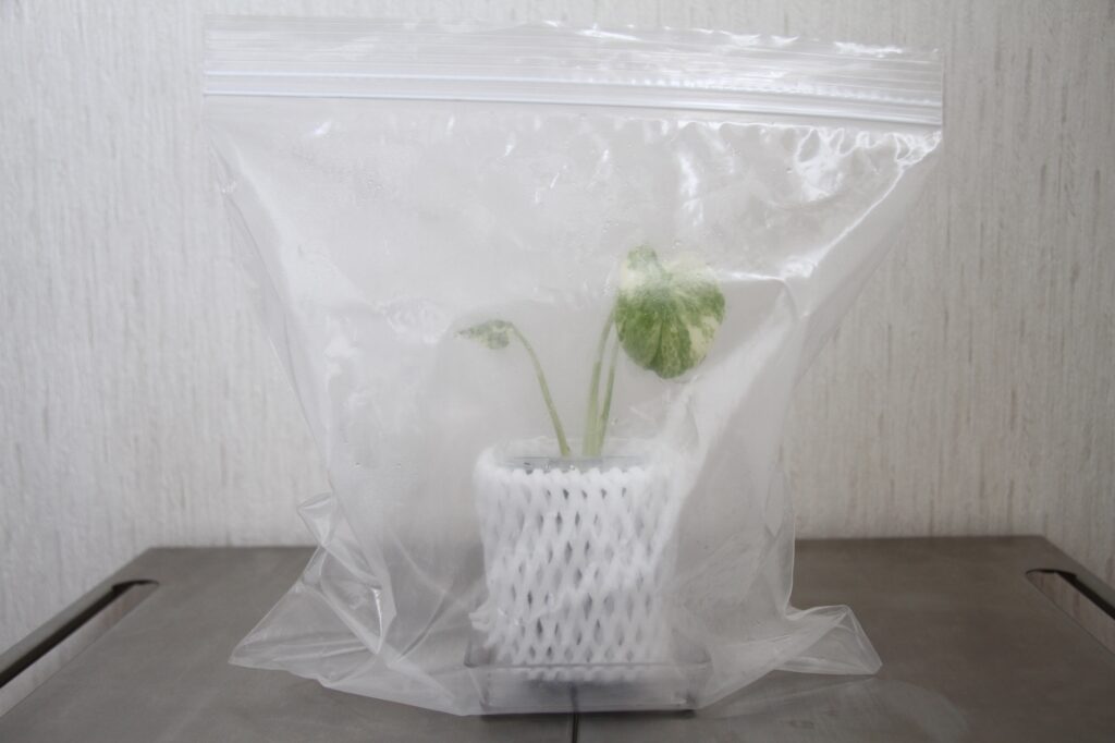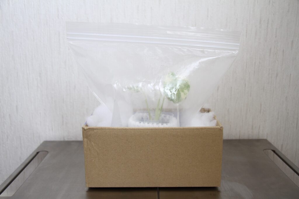 そこで、このままの状態で袋密閉することにしました。迎えたのが2月末だったこともあり、小苗の根っこを触るのが怖かったのもあります。