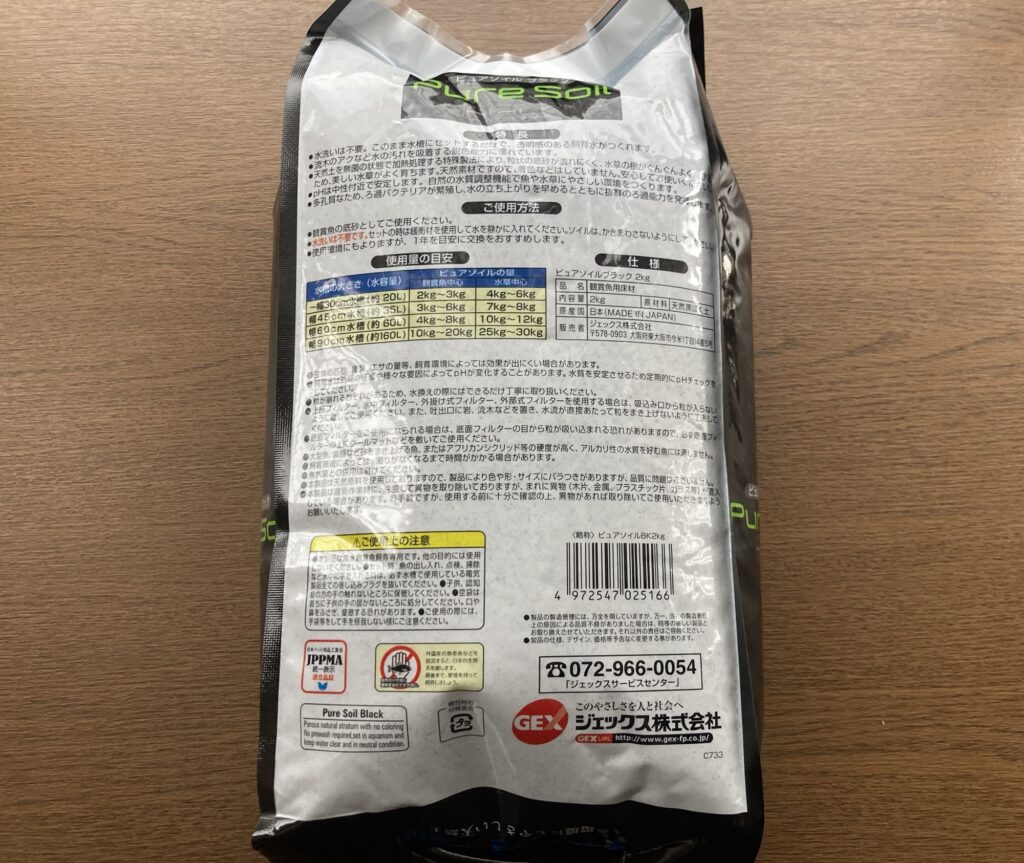それがこちら。GEXのアクアリウム用のソイルで『ピュアソイルブラック』というもの。