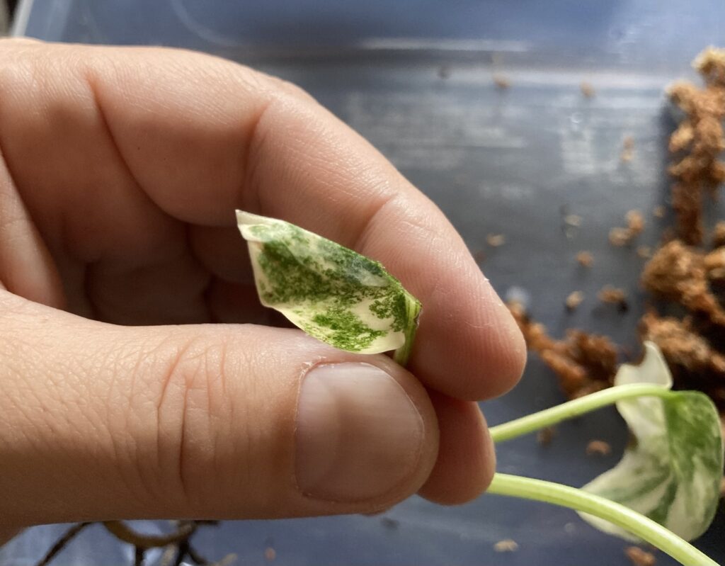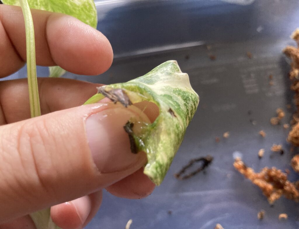 二番目に古い葉っぱも、溶けている部分を切り取りました。